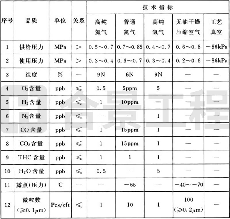B.0.1 發(fā)光二極管生產(chǎn)工藝動(dòng)力品質(zhì)(氣體)要求可按表B.0.1執(zhí)行。